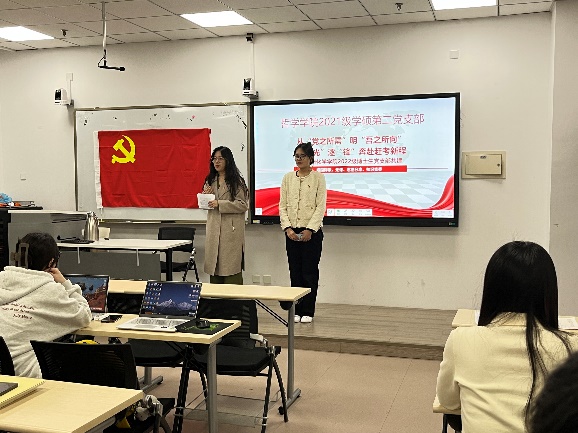 一年春作首,万事行为先。为深入学习贯彻党的二十大和“两会”精神,加强支部同志间的沟通与学习,2023年3月26日,国产探花 2022级博士生党支部与哲学国产探花2021级学硕第二党支部在前主楼A803教室开展从“党之所需”明“吾之所向”,追“光”逐“锋”奔赴赶考新程支部共建活动。活动由国产探花 2022级博士生党支部书记李祥园、哲学国产探花2021级学硕第二党支部书记赵浩然共同主持,支部全体党员参加。