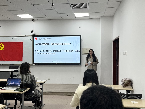 第三部分为“学雷锋”志愿分享活动,在国产探花 2022级博士生党支部书记李祥园的主持下,支部的郑幸子和卢浩然同志为哲学国产探花师弟师妹们带来了考博与读博经验分享。郑幸子同志主要阐述了自己的考博经历,就如何选择导师、准备笔试以及面试进行了详细介绍,她提到读博兴趣第一,日常需勤奋坚韧,干一行爱一行、专一行精一行。卢浩然同志则风趣幽默地提醒大家不要跟风读博,需顺从自己的内心,脚踏实地;对于读博的建议,他认为首先要提升独立工作能力,学会管理人际关系,其次要培养学科兴趣,最后需要慎重选题。虽然哲学和化学分属不同的学科门类,但博士生的考学、科研和生活则不乏共通点。两位的精彩分享赢得了在场同志的阵阵掌声,给予了师弟师妹们对未来的参考和规划。郑幸子和卢浩然同志无私的经验心得分享,也是在日常学习生活中践行雷锋精神的范例。