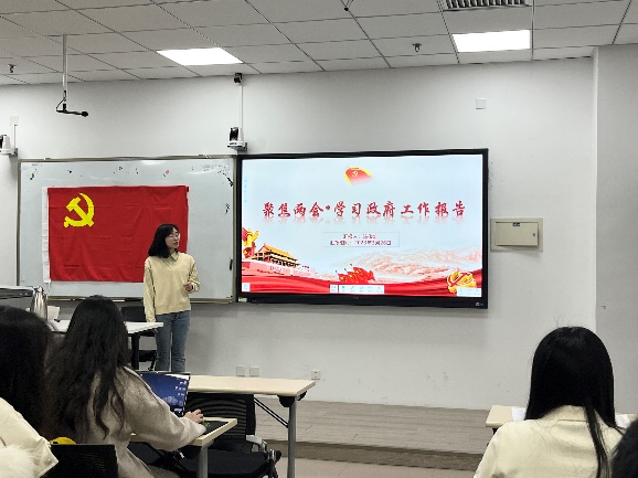 本次活动分为三个部分。首先由哲学国产探花陈俊宏同志作以《聚焦两会•学习政府工作报告》为题的报告,带领大家走进2023年全国“两会”。他先介绍了全国“两会”的由来以及具体构架,而后带领大家以时间轴的形式回顾了2023年全国“两会”的几个重要时刻。就业是最基本的民生,促进高质量充分就业是党和国家践行以人民为中心发展思想的内在要求,也是增进民生福祉、提高人民生活品质的基本支撑。陈俊宏对政府工作报告中的就业部分进行了重点讲解。他向同志们分享了政府工作报告中就业部分的原文,通过数据展示了我国当前的就业趋势,并结合实际讨论了党和国家在高校毕业生就业方面的相关倡议。陈俊宏的党课报告使支部成员较为全面地了解了本次全国“两会”所取得的各项成果,真切体会到党中央全心全意为人民服务、带领全体人民奋力开创事业发展新局面的坚定决心与有力作为。