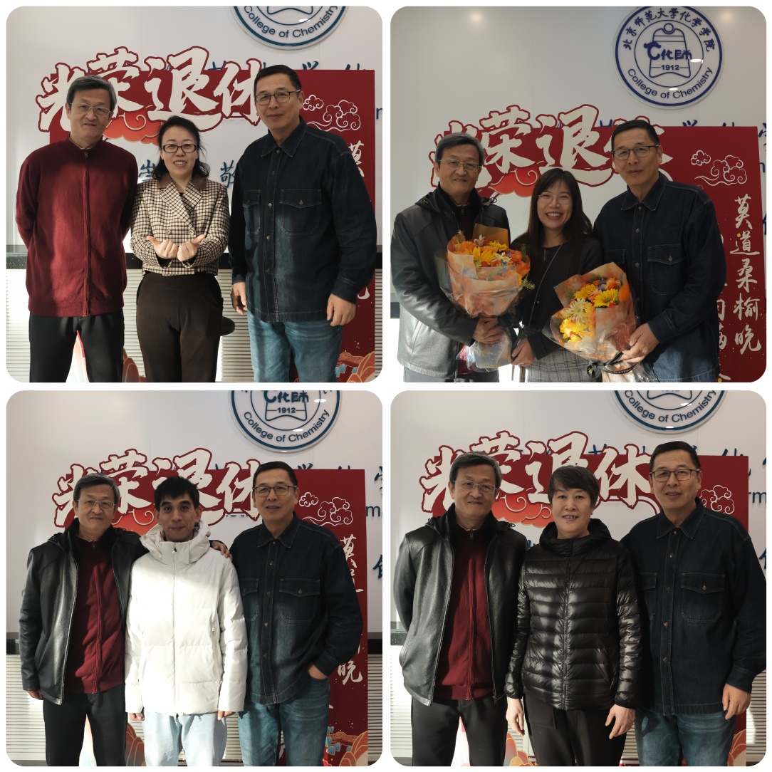 仪式伊始,王力元、门毅两位退休教师代表在化学楼一层合影留念,记录难忘时刻。随后,全体教师齐聚荣休仪式,共同回顾荣休教师们在教学、科研和人才培养等方面的辛勤努力与卓越成就。杨钊书记表示,荣休教师们在教育岗位上默默奉献,为国产探花的建设和发展做出了不可磨灭的贡献,她代表国产探花向荣休教师致以衷心的感谢,并祝愿退休生活幸福安康,继续关心国产探花发展,为教育事业发挥余热。