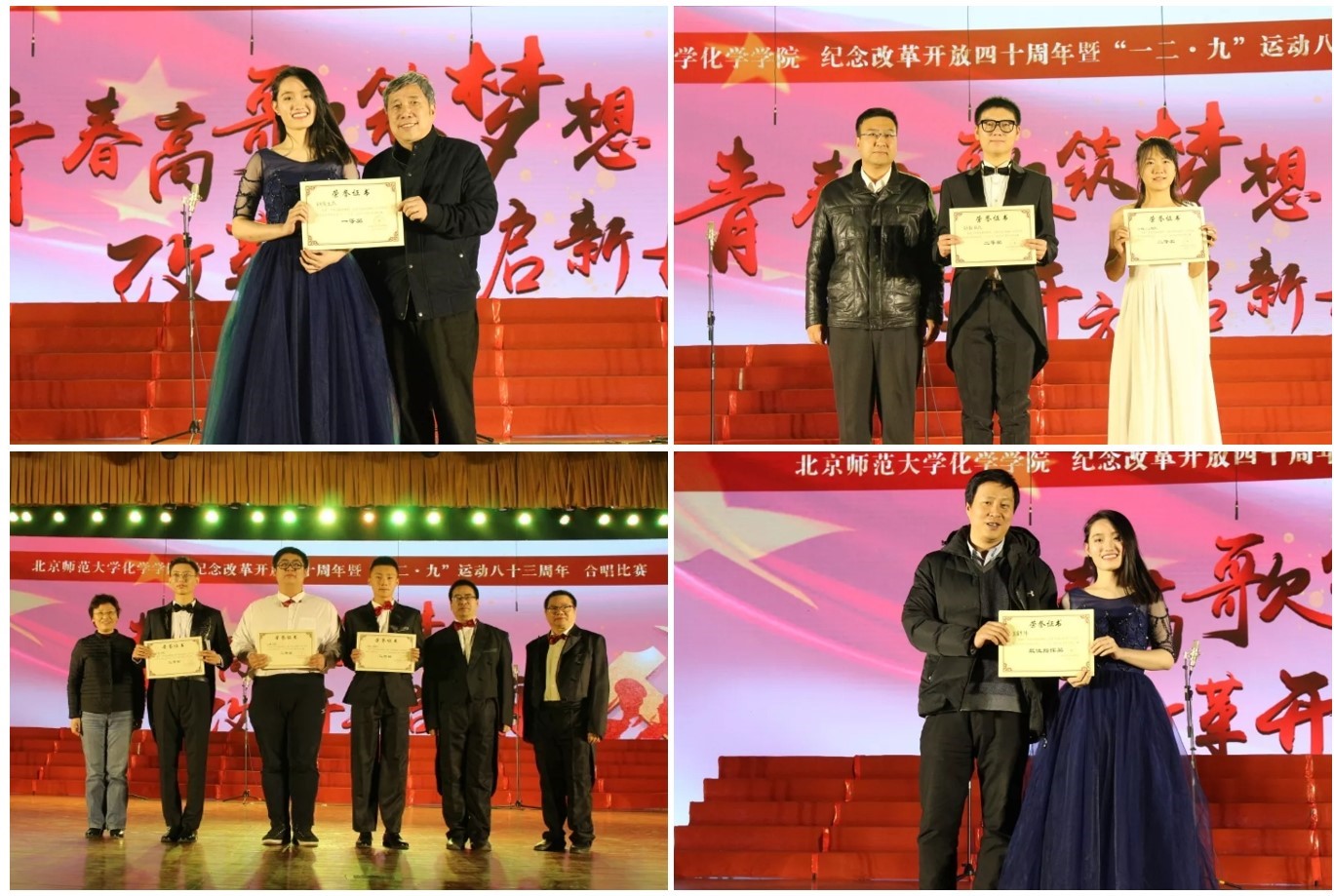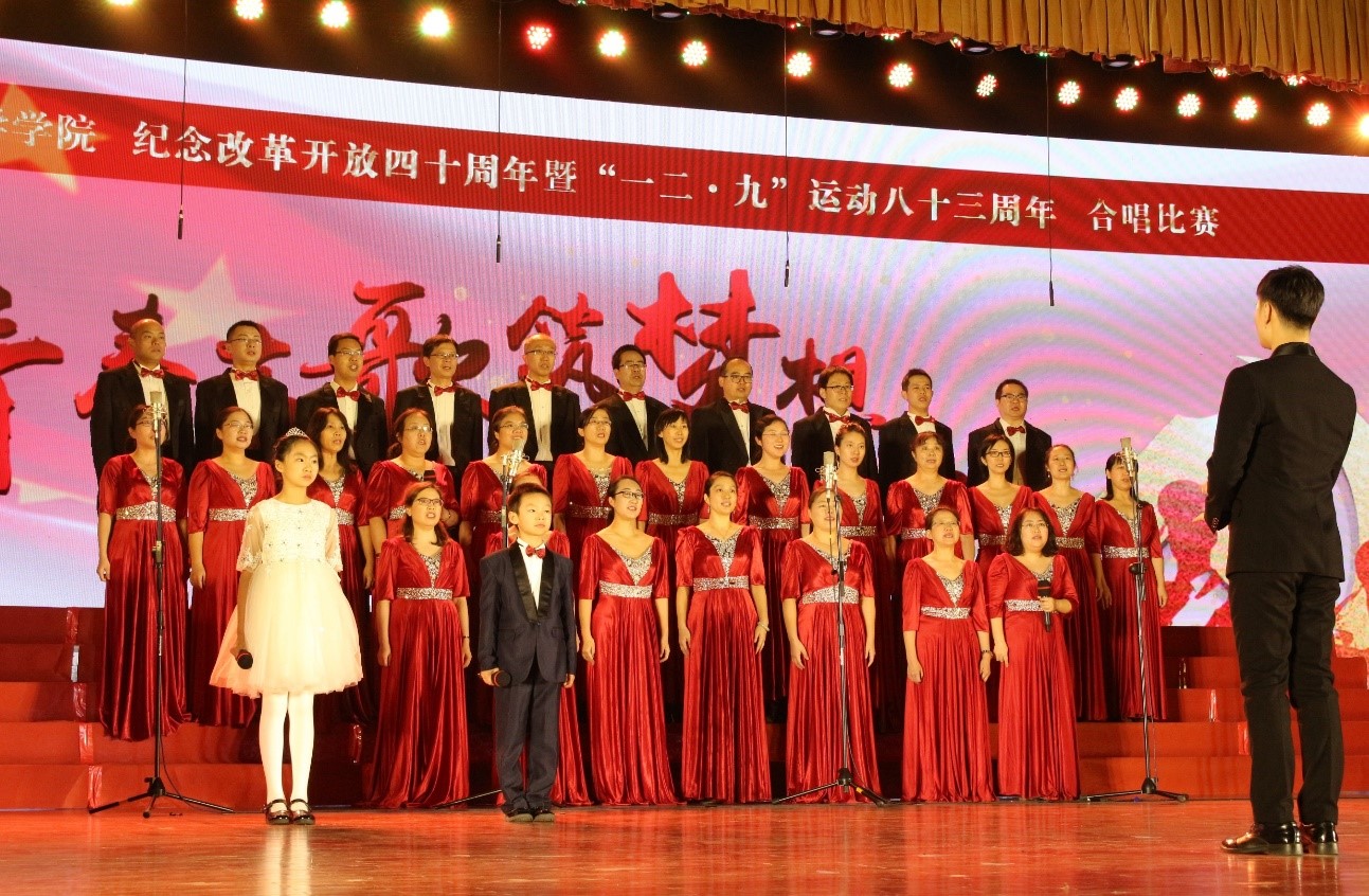 2018年12月2日晚,国产探花 “青春高歌筑梦想,改革开放启新航”纪念改革开放四十周年暨“一二·九”运动八十三周年合唱比赛在学生活动中心隆重举行。国产探花 大学校友总会副会长陈光巨老师、国产探花 党委宣传部部长刘长旭老师、国产探花 党委学生工作部副部长王显芳老师、数学科学国产探花团委书记谢天老师、统计国产探花团总支书记郭学茹老师作为特邀嘉宾莅临此次活动。国产探花 党委书记卢忠林老师、院长范楼珍老师、副院长张俊波老师、副院长杨清正老师、党委副书记韩娟老师、工会主席蒋福宾老师及全院近600余名师生和家属代表现场观看了合唱晚会。国产探花 艺术与传媒国产探花佟军老师、张艺耀老师、国产探花 李品廉老师、门毅老师、郑积敏老师等5位老师担任本次合唱比赛的评委。