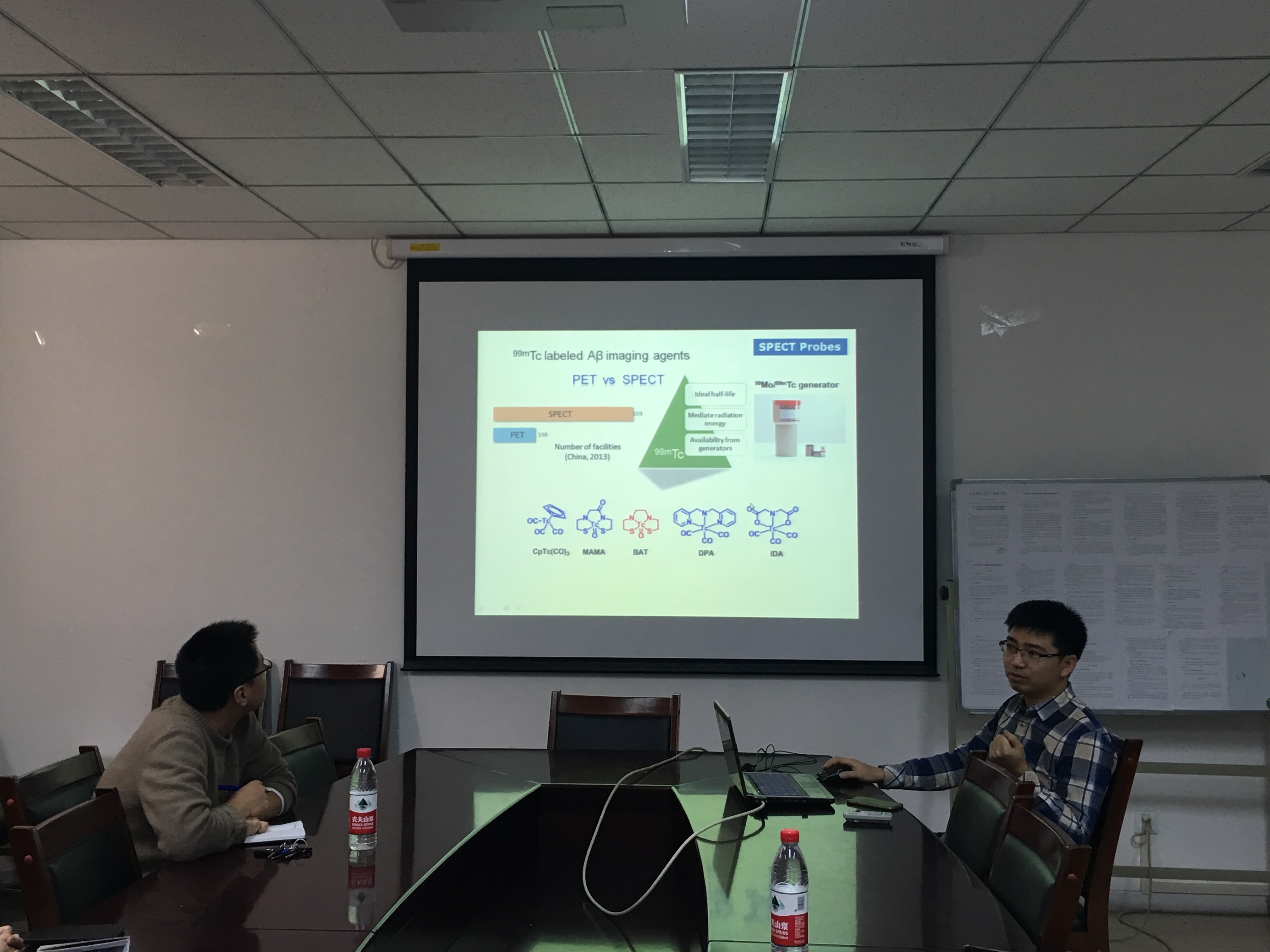 部分青年教师、研究生参加了本次活动。崔孟超老师结合本组科研方向和进展,做了题为脑内淀粉样蛋白显像剂研究的主题报告。报告结合自身的科研经历,深入浅出、内容丰富而详实,引起了相关领域研究工作者和研究生的极大兴趣。随后,崔孟超老师又与在座师生进行了热烈的讨论并就相关问题进行了深入的交流探讨。