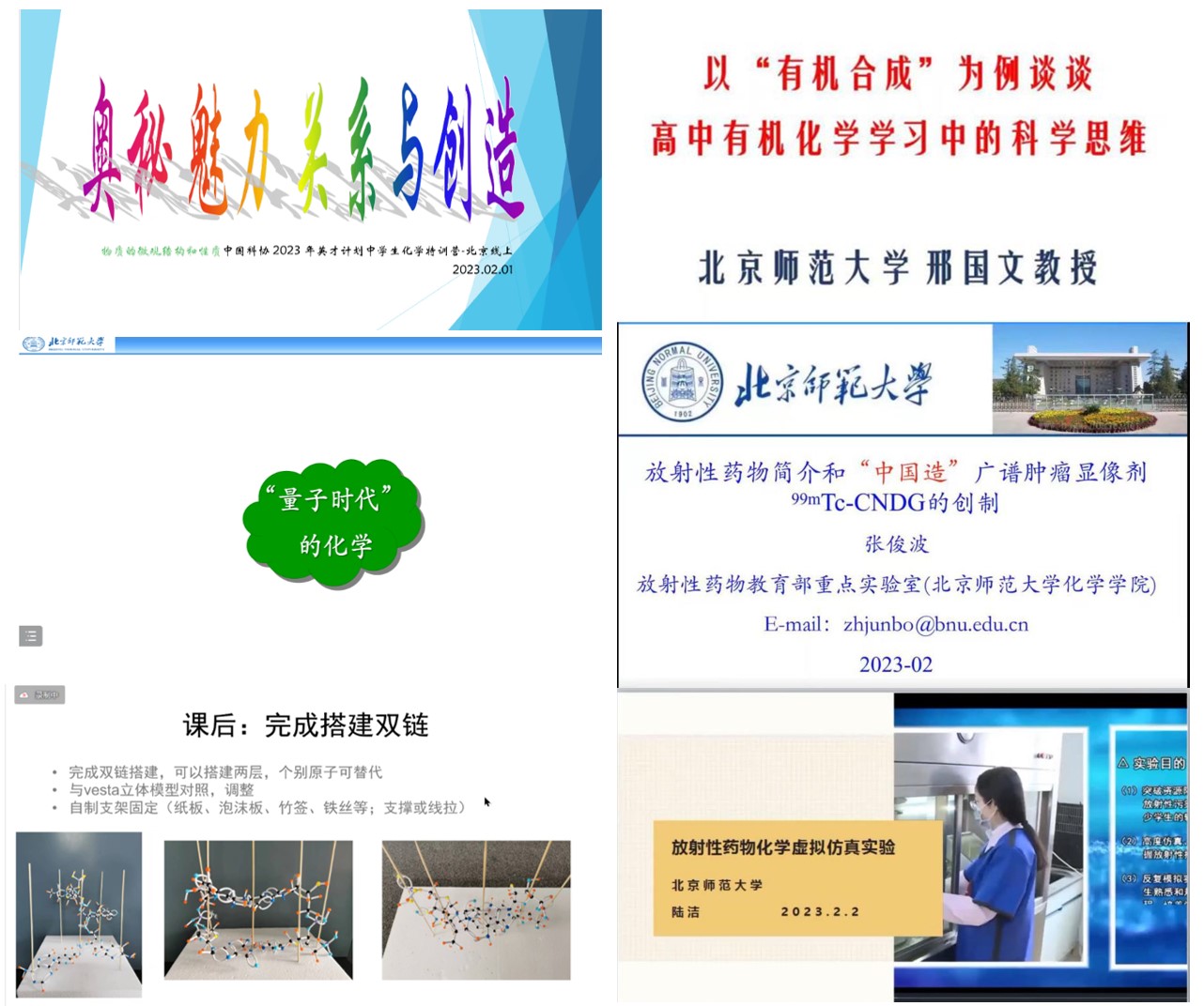 2月2日的课程以有机化学和药物化学为主题。上午,邢国文教授以“有机合成”为例讲授了高中有机化学学习中的科学思维方法,提到“有机化学是科学也是艺术”,引导同学们应用多向思维模式学习化学,课堂氛围十分活跃。下午第一阶段,张俊波教授以“放射性药物简介和‘中国造’广谱肿瘤显像剂99mTc-CNDG的创制”为题,介绍了放射性药物相关的基础知识,展示了团队的科研成果,鼓励同学们学习化学要敢于尝试,贵在坚持。接着,陆洁老师带领学员开展了“放射性药物化学虚拟仿真实验”,“虚实结合”,让同学们更加深刻地理解所学知识。