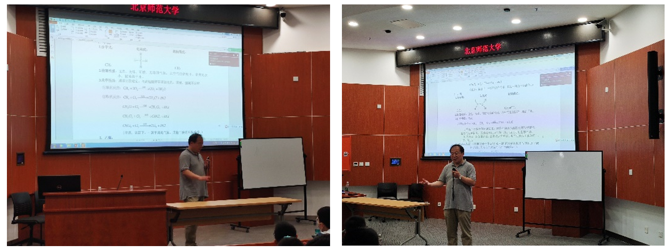 上午第三阶段,焦鹏老师为同学们讲授了《魅力有机化学》理论课,系统介绍了有机化学中各类有机物的结构、名称及重要性质,同时课程中积极与同学们交流解惑,激发同学们学习有机化学的热情。
