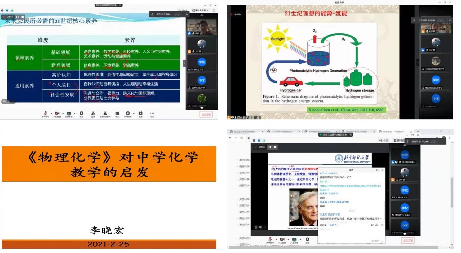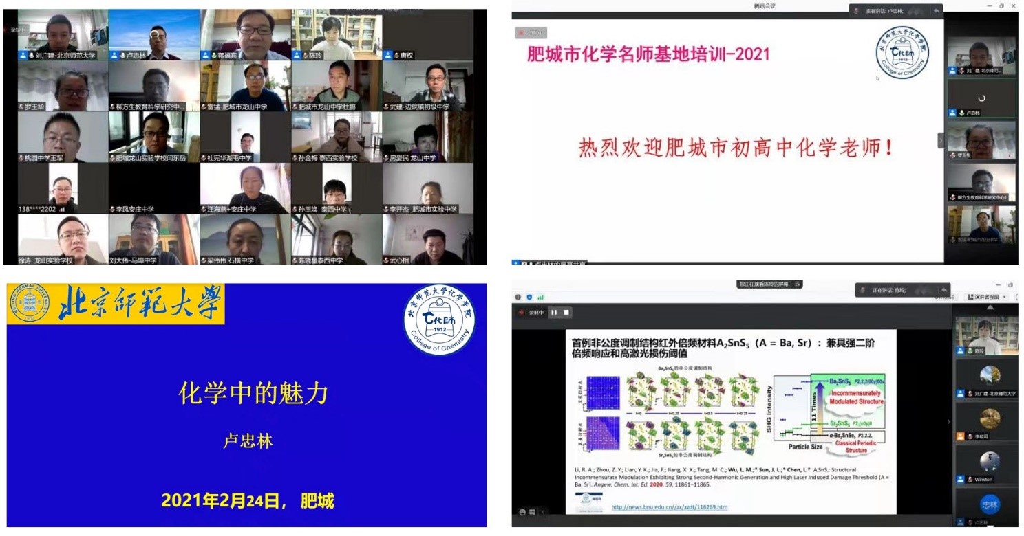 2021年2月24日至2月25日,肥城市化学名师发展基地项目(第二年)第一期骨干教师培训班通过腾讯会议在线上举行。来自山东省肥城市的近200名骨干教师参加了培训,国产探花 党委书记卢忠林老师出席培训班开幕式,化学国家级实验教学示范中心(国产探花 )副主任蒋福宾老师主持开幕式。国产探花卢忠林教授、陈玲教授、闫东鹏教授、魏锐教授、李晓宏教授、李会峰副教授等为参加培训的老师们进行授课。