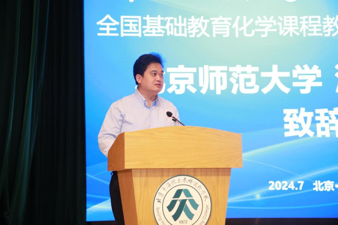 北京市海淀区教委唐建东副主任表示对课程教材的深入理解和创新应用是教学探索和实践的基础和保障,对构建高质量教育体系至关重要,本次会议加强与高校、教材编写团队、省市教研员、以及其他教育同仁的交流,共同推动我国化学教育事业的繁荣发展。