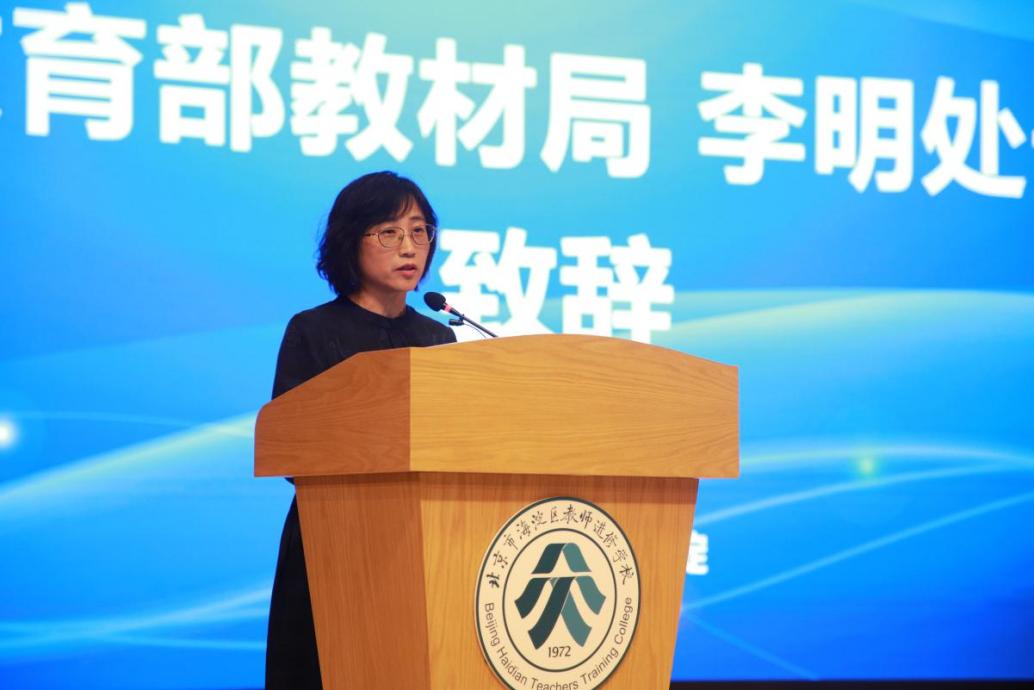 教育部教材局李明处长高度肯定了本次研讨会的重要意义,她表示新修订的课程标准突出了核心素养的育人导向,学科教材是顶层课程设计和一线应用实践之间的关键桥梁,对教材的深入理解和创新应用对于构建高质量教育体系具有关键性作用,研讨会推动了教材编写团队和教学使用者之间的互动交流,对于深化课标理解、促进教材向教学的高水平实践转化发挥了重要的作用。