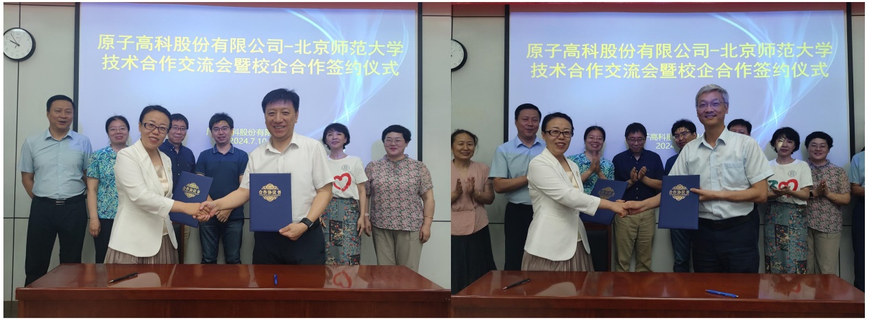 北师大国产探花 党委书记杨钊、原子高科总经理赵京、原子高科党委副书记兼副总经理李国祥分别代表双方续签了框架合作协议、奖学奖教金协议。双方将继续发挥各自优势,巩固全面合作关系,实现协同创新与高质量发展。