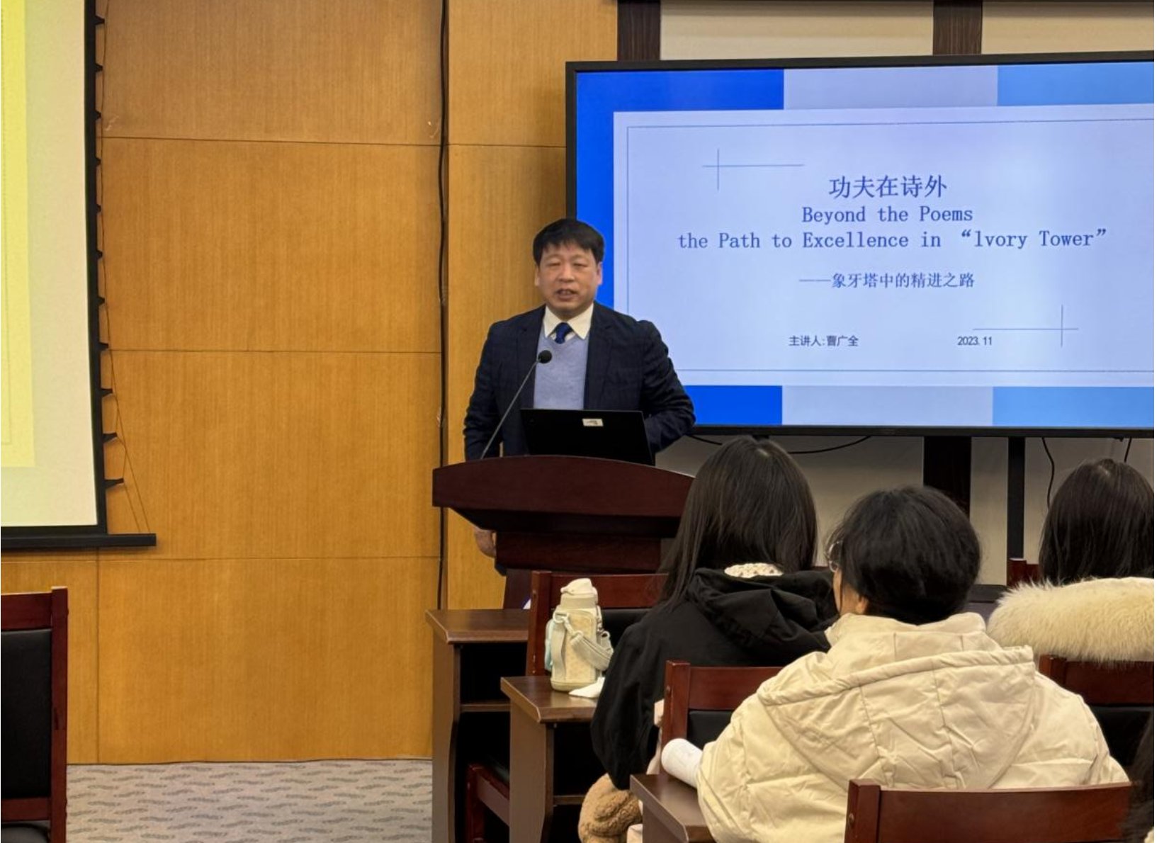 11月25日,曹广全局长为国产探花 给同学们做了题为《功夫在诗外一一象牙塔中的精进之路》的职业生涯规划讲座,讲座有国产探花 党委书记杨钊老师主持,近百名同学参加了本次活动。