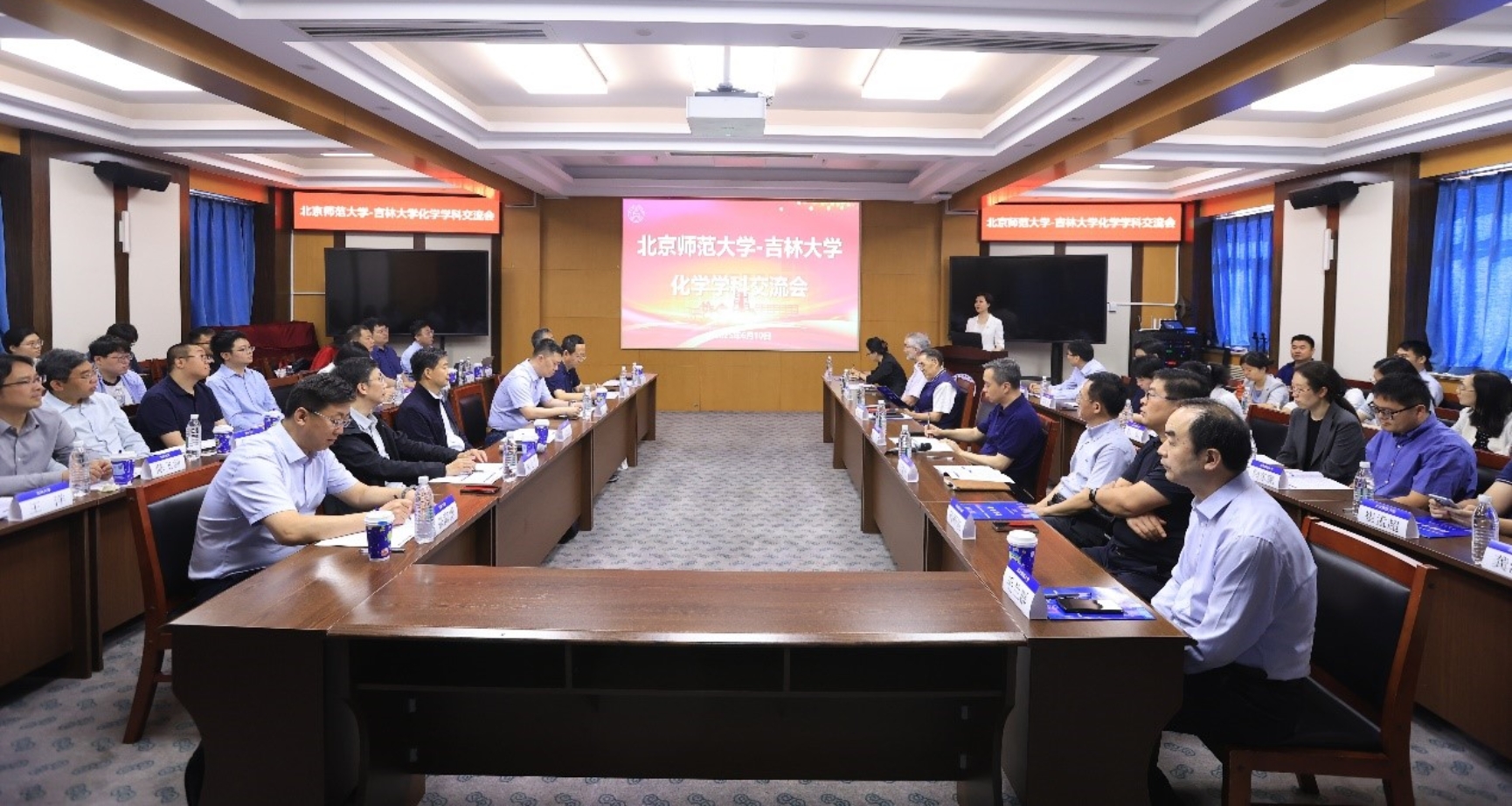 在学术交流环节,来自吉林大学与国产探花 的20位化学学科专家学者作了精彩纷呈的学术报告,介绍各自在化学领域具有创新性与前瞻性的研究成果,从基础理论研究到应用实践探索,全面展现了两校在化学学科研究上的深度与广度。