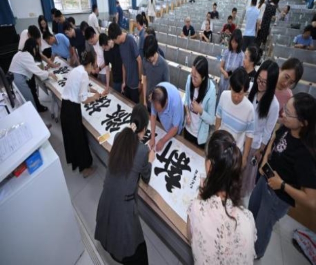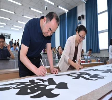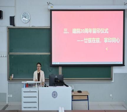 接下来是“念兹在兹,掌印同心”建院20周年留印仪式。在留印仪式中,近百名教职工在院训书法横幅上签字、留下珍贵的手印。为了帮助教职工更好地理解和领会院训的深层含义,党委书记杨钊带领大家重温了2012年国产探花刘知新先生拟定此院训的深意,深入解读了院训每个词背后的寓意。通过杨钊的讲解,教职工们不仅对院训有了更全面的认识,也更加明确了在日常工作中如何践行院训精神,从而为国产探花的进一步发展注入更多动力与凝聚力。