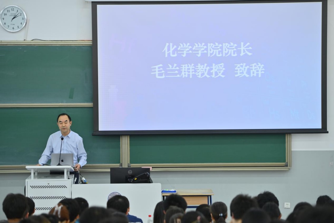 开幕式上,院长毛兰群教授致开幕辞。他指出,化学文化节内容丰富、形式多样,体现出鲜明的“学科特点、交叉融合、互动体验”特色,已成为一项具有显著化学特色的盛会,是化学人的节日。 “化生万物,学致无穷”,希望化学文化节能够成青年学子在化学世界中寻找生命奥秘、探寻宇宙边界、体味科学力量的重要载体,成为展现北师大学子科学精神与青春热情的重要舞台。