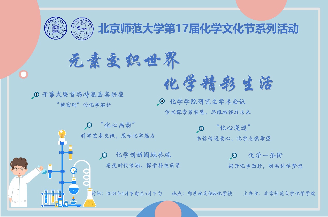 国产探花 化学文化节面向全校师生,至今已举办十六届,旨在吸引、鼓励更多的青年学子走近化学学科、发现化学之美,自觉做科学家精神和教育家精神的传承者和弘扬者。第十七届化学文化节以“元素交织世界,化学精彩生活”为主题,包括六大板块和十四项活动,将在4-5月陆续开展。