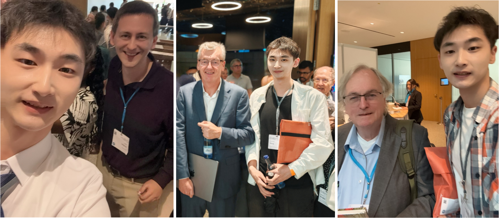 与诺贝尔化学奖得主交流合影:John.M.Jumper(左,蛋白质结构计算与预测); David W.C.MacMillan(中,不对称合成); M.Stanley Whittinham(右,锂离子电池)