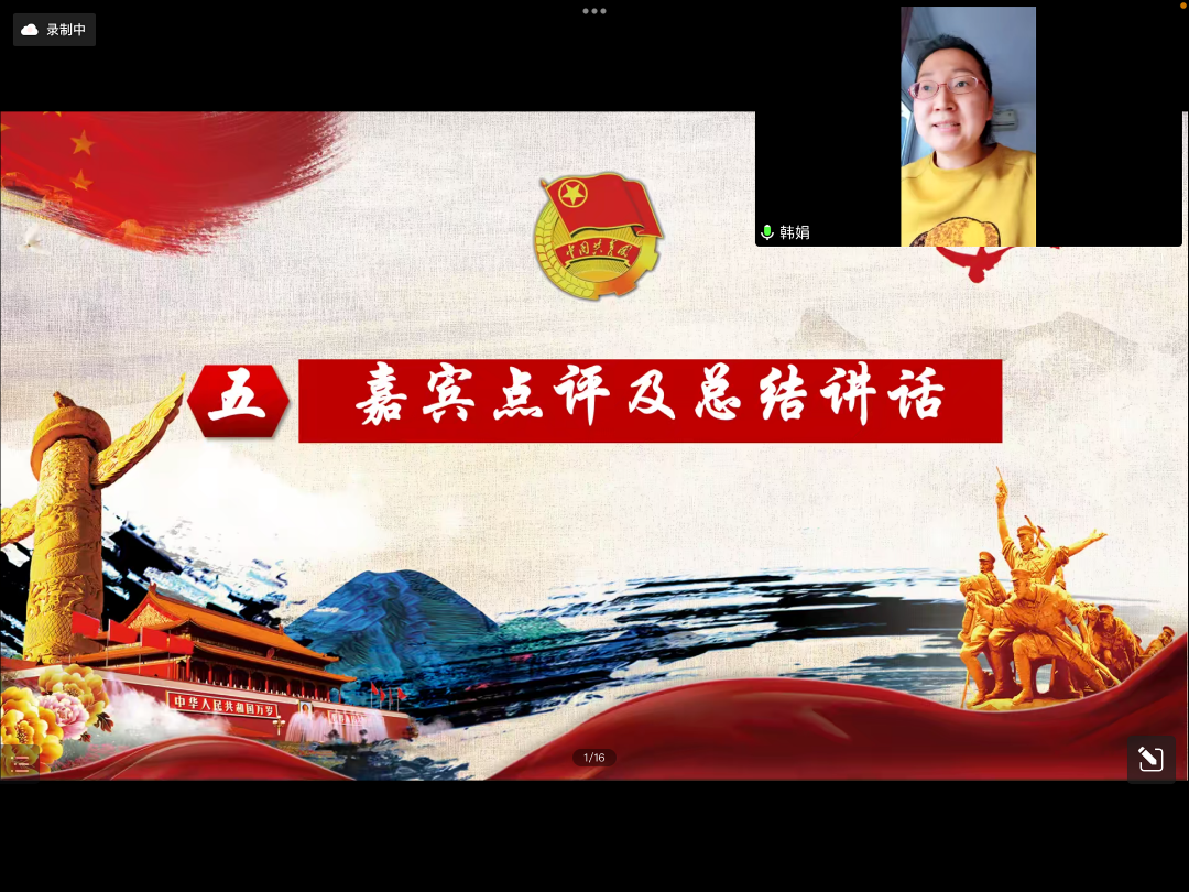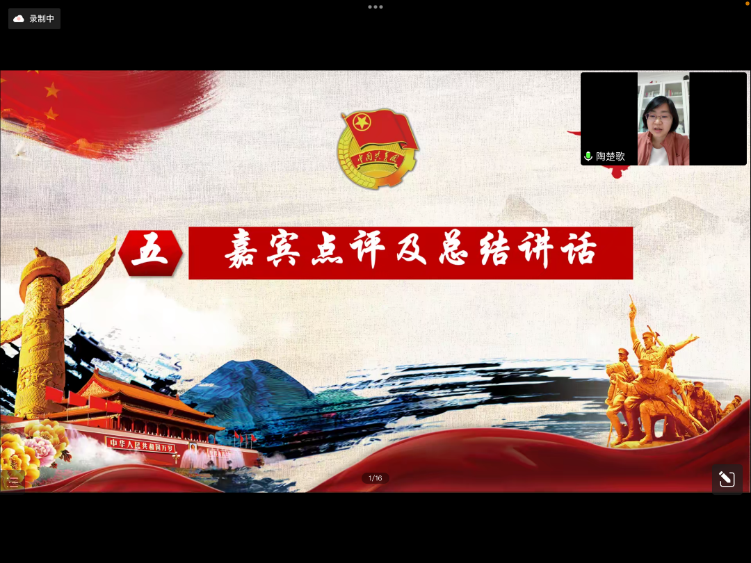 各位同学的展示结束后是老师的点评环节。首先,陶楚歌老师表示选手们的演讲非常精彩,可以看出每一位同学都做了十分充足的准备,接着她给同学们提出了一些改进的小建议。最后由韩娟老师进行总结讲话,老师认为本次微团课大赛非常成功,不仅让同学们学习到了相关知识,更为同学们提供了一个交流思想的平台。她表示,希望同学们今后有机会在更广阔舞台上施展自身的才干,不忘初心,牢记使命,在火热的青春中放飞人生梦想,在拼搏的青春中成就事业华章!