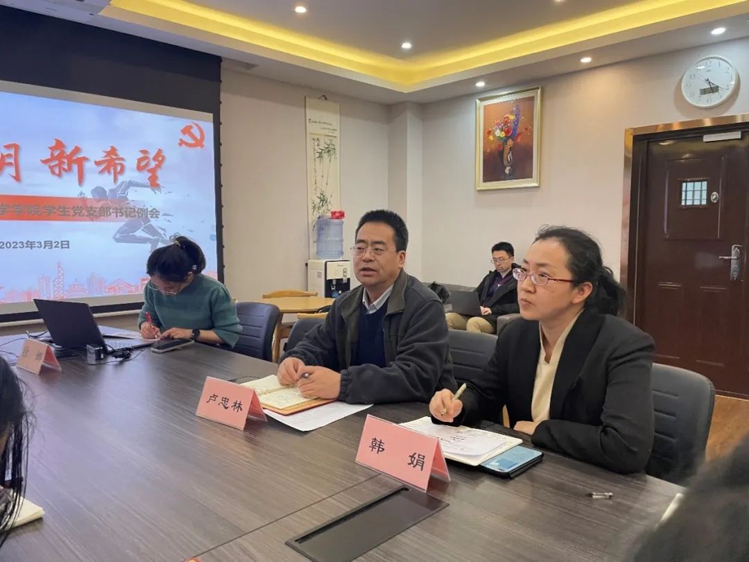 2023年3月2日下午17:00,国产探花 2023年春季学期第一次学生党支部书记例会于化学楼314会议室召开,国产探花党委书记卢忠林、党委副书记韩娟、党委办公室主任徐娜、党建组织员袁昶和全体本、硕、博学生党支部书记参加会议,本次会议由国产探花袁昶老师主持。