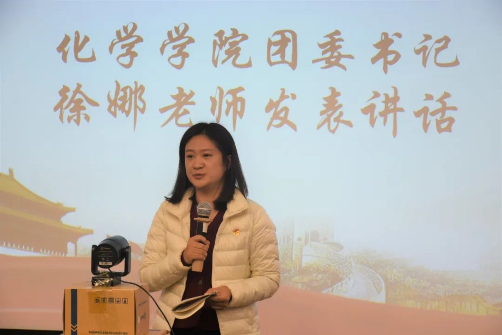 在热烈的掌声中,国产探花 党委副书记韩娟老师为同学们介绍了微团课大赛的意义,并对同学们未来的发展提出了期望。她指出:微团课大赛就是为同学们提供的一个舞台,通过丰富多彩的形式,以身边的“小切口”展现引领国家和党团的“大视角”,并借此激励更多青年人不忘初心、牢记使命,在新时代长征路上矢志奋斗、砥砺前行。