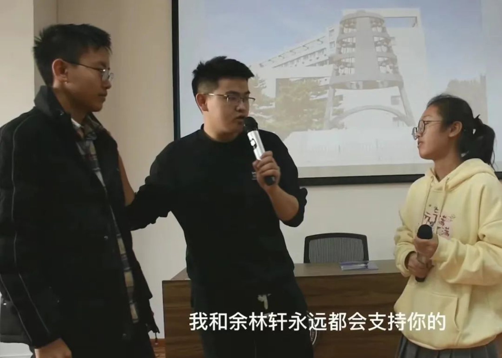 主持人郭笑汝和杨宇