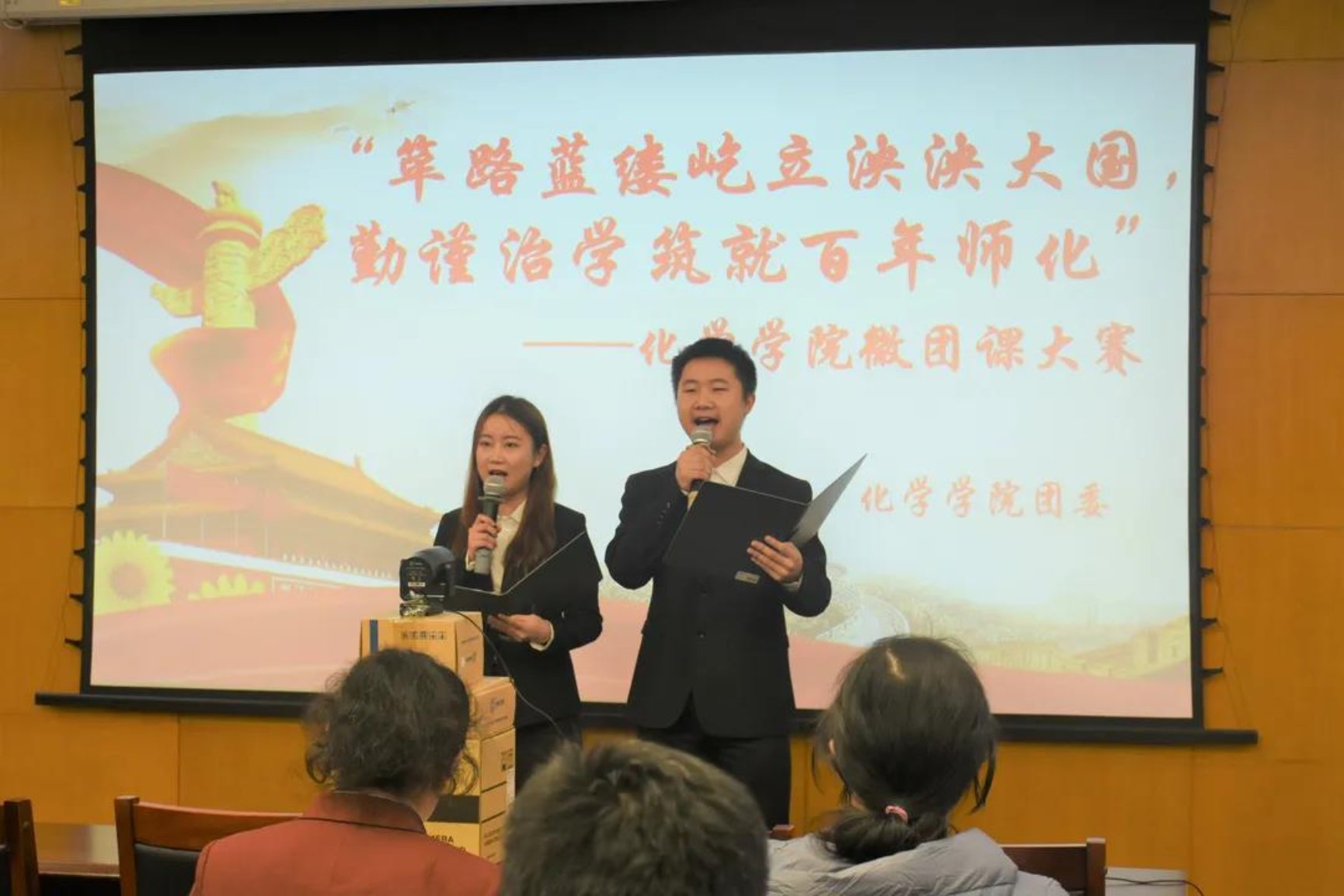 忆往昔,风雨兼程,百年党史撰伟业;看今朝,风华正茂,时政精神展担当。听木铎金声,追溯师大百年沿革的铿锵脚步;看桃李成蹊,细数化院科研教学的累累硕果。