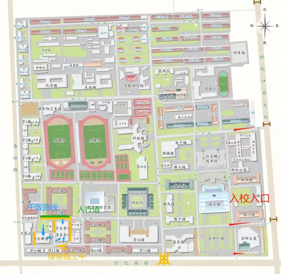 报到=大南门→京师广场国产探花 摊位→宿舍→圈存机/校园卡→班会