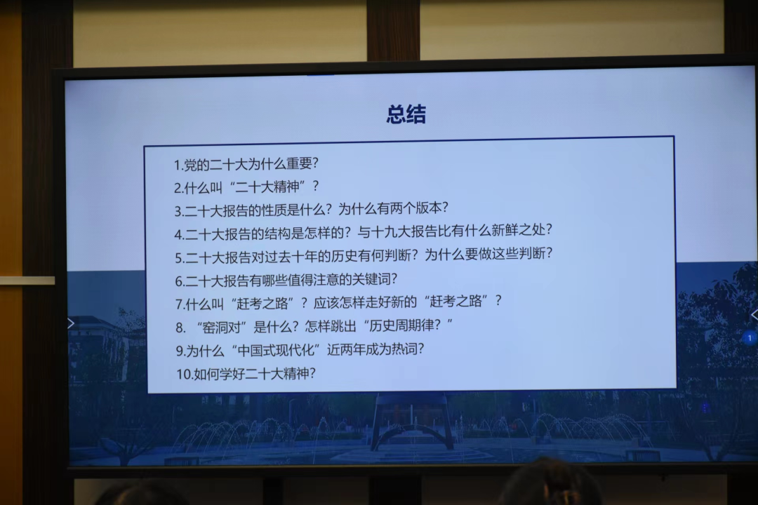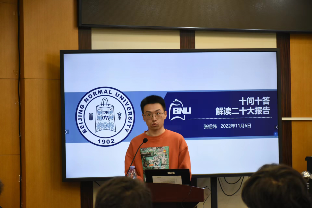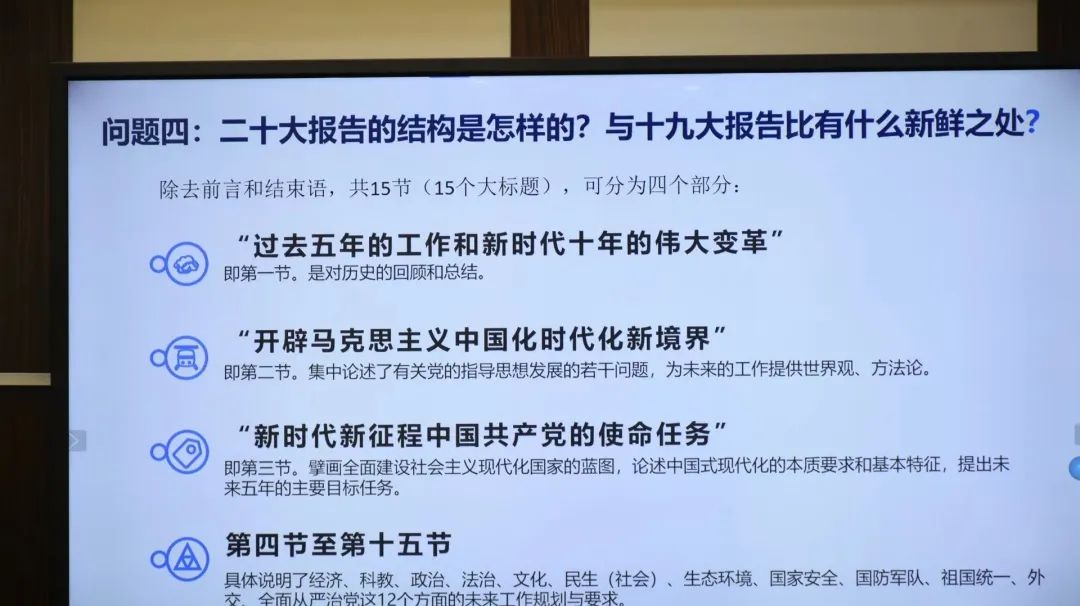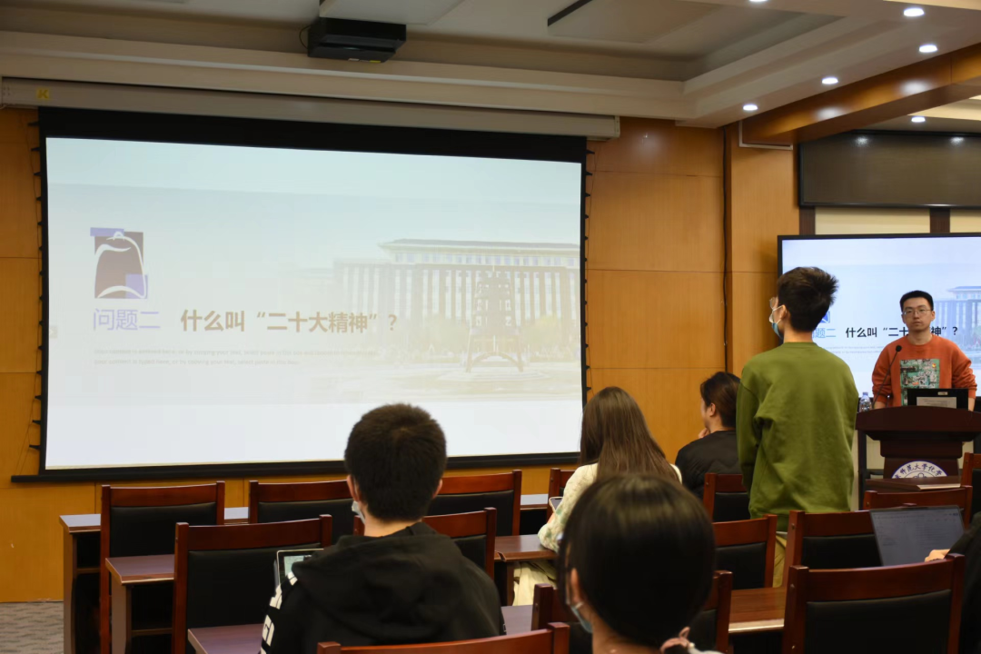 会议伊始,马克思主义国产探花的张经纬同学在调查了同学们对政治的了解程度后,用十个问题,系统地讲述了二十大精神。