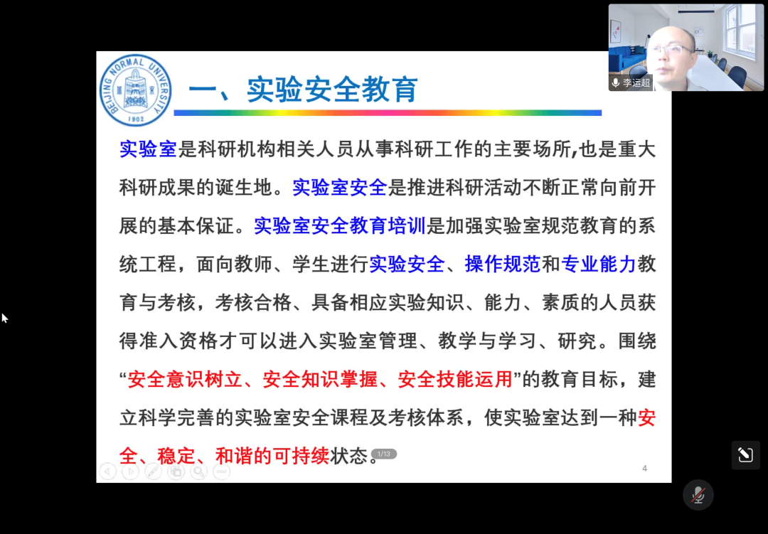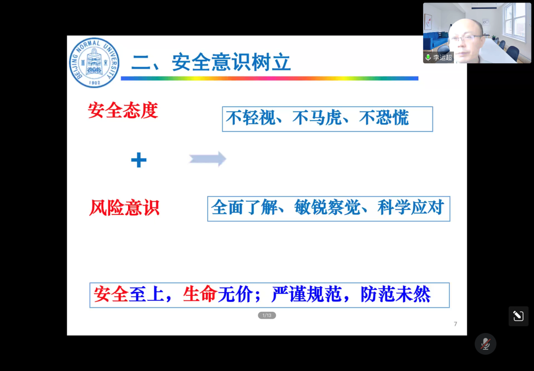 首先,李运超老师以几起实验室安全事故为例,强调进行实验室安全教育的必要性,使同学们了解到树立安全意识的重要性——既要有安全态度,不轻视,不恐慌;又要树立风险意识,全面了解,科学应对。