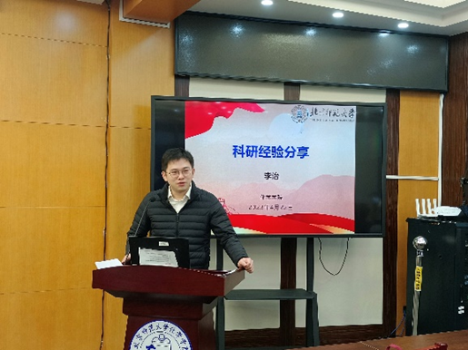 李治老师以青年学生做科研的新颖性、不确定性为切入,幽默风趣地开始了自己的分享。他认为,在科研上,最重要的是要积极与老师特别是导师沟通,主动反馈学习进度与想法。但是“师傅领进门,修行在个人”,科学研究终归考察的是自我学习能力,同学们可以多参加学术论坛,在这一过程中不断磨炼自己的科研能力。