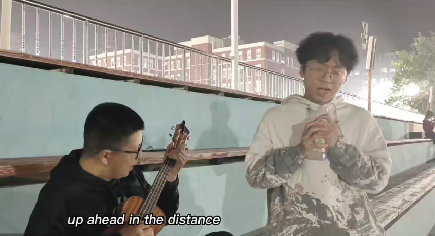 “童年的纸飞机,现在终于飞回我手里……”两位同学的歌声仿佛带我们回到了儿时。在这清脆悦耳的歌声中,我们再次体会到了童年的快乐。